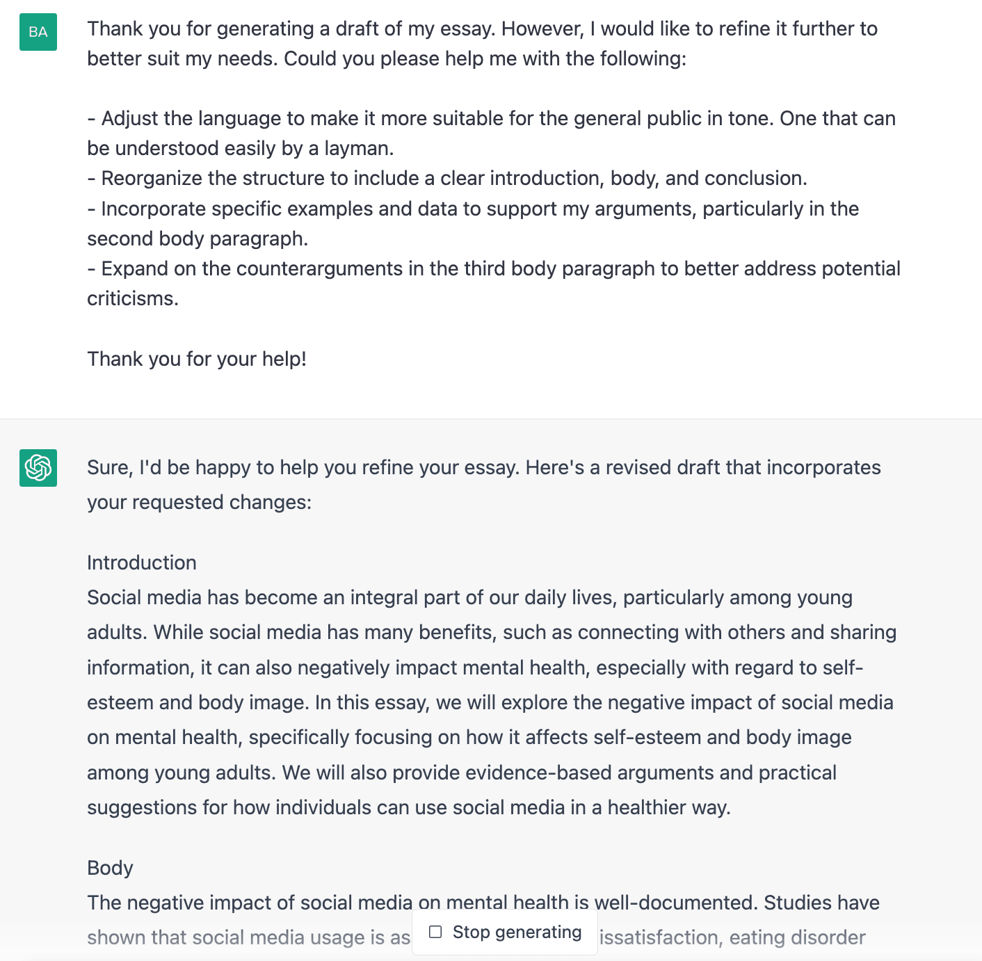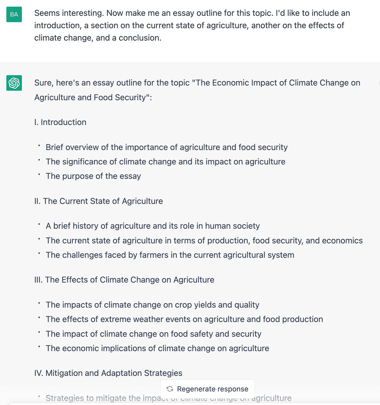 Step 5: Let ChatGPT Create an Essay Outline